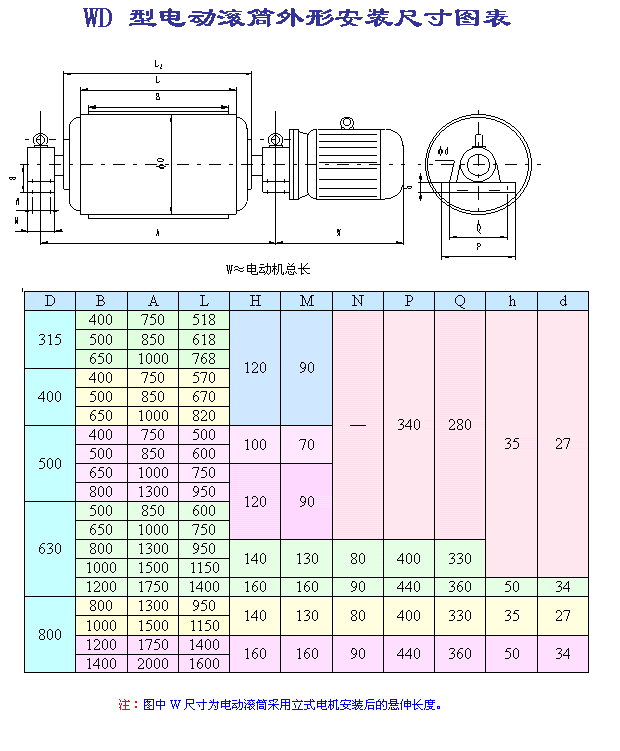 (1).因目前外裝式電動滾筒尚未制定相關(guān)行業(yè)標(biāo)準(zhǔn),本廠將該型號電動滾筒首位代號用W(“外裝”的首位漢語拼音)表示。外裝式電動滾筒外置電機(jī)可分為立式電機(jī)和臥式電機(jī),用戶訂購時(shí)請加以說明;