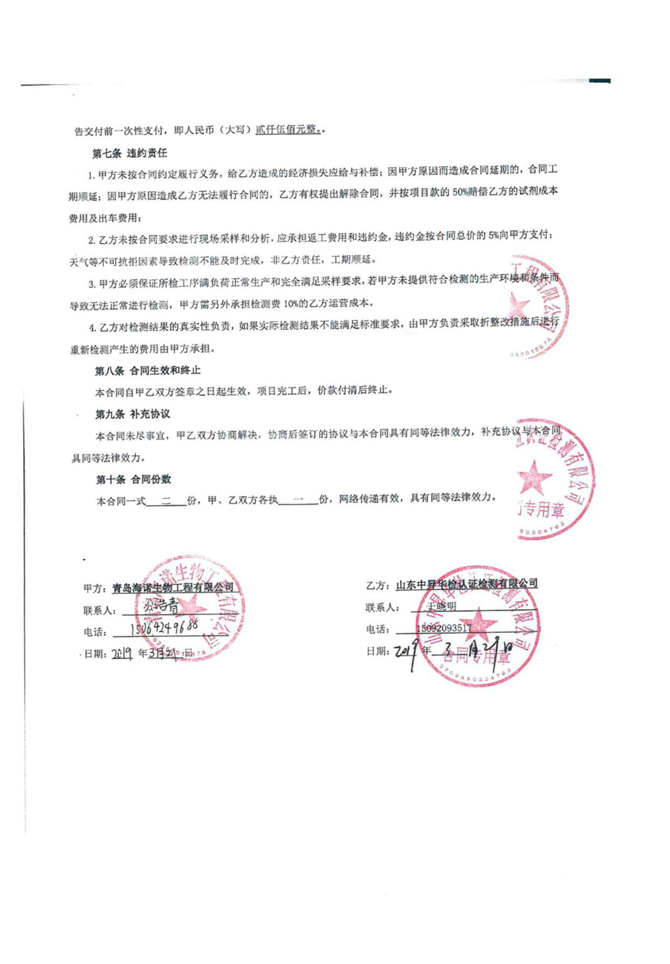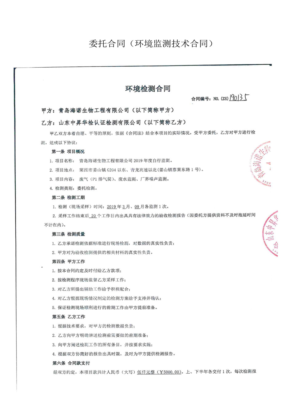 青島海諾生物工程有限公司自行監測方案